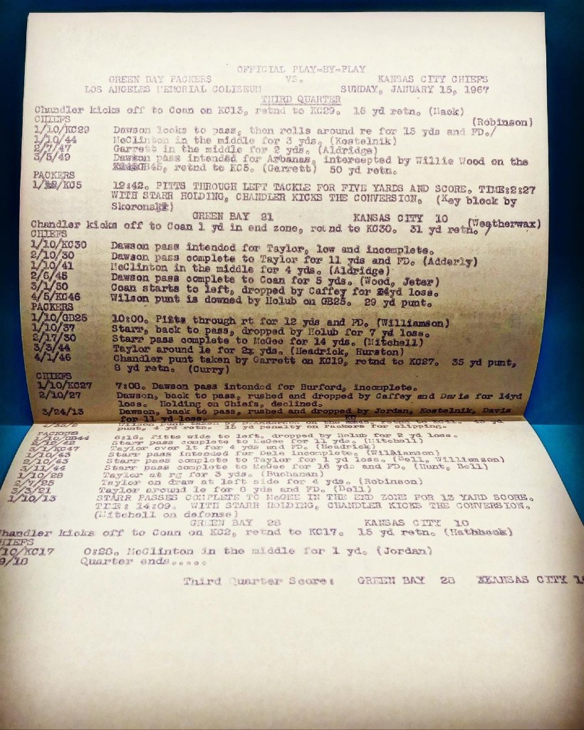 Happy Super Bowl Sunday friends! You might have noticed a theme this week and I’m so excited to share dad’s program from Super Bowl I, played on a January 15, 1967. If I remember correctly, this was a gift from dad’s mentor/friend Bill Schroeder who started the Helm’s Athletic Foundation and museum which was instrumental in facilitating my dad’s sports research. Check out this article on Mr. Schroeder https://www.latimes.com/archives/la-xpm-1987-12-24-sp-31108-story.html.